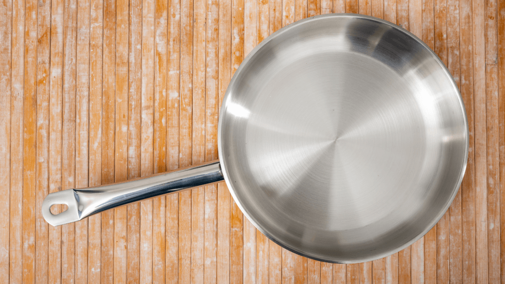 Préchauffer votre poêle en inox à feu moyen (si la plaque va à 12, mettre à 6) pendant 2 minutes